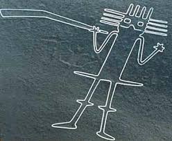 Para pembuat garis berbentuk geometris mungkin tak pernah memahami apa yang mereka lakukan. Tetapi barangkali mereka tahu benar apa yang para dewa butuhkan untuk mendarat. Gambar-gambar besar yang tak dapat disangsikan bahwa semuanya telah dibuat sebagai isyarat bagi makhluk yang melayang-layang di udara, banyak ditemukan di lereng-lereng pegunungan di Peru. Adakah guna lain dari kesemuanya itu? Satu di antara gambar-gambar yang paling aneh ialah yang diukir pada dinding tinggi dari batu karang terjal berwarna merah di Teluk Pisco. Jika anda datang ke tempat itu dengan kapal laut, darijarak 12 mil lebih anda akan dapat melihat suatu bentuk yang tingginya hampir 820 kaki, dan jika secara main-main anda berkata: “Itu seperti .......” maka reaksi anda ialah bahwa karya pemahat patung ini seperti suatu tangkai kail raksasa atau seperti sebatang tempat lilin raksasa. Seutas tambang yang panjang ditemukan pula pada pilar tengah dari batu ini. Apakah ini dulu digunakan sebagai pendulum?